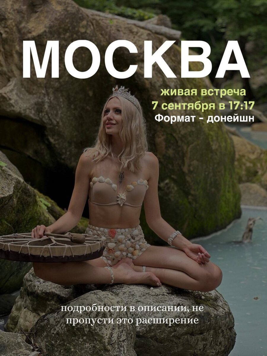 ✨ МОСКВА. 7 сентября. 17:17 Время, когда пространство раскрывается, и душа вспоминает себя. Я приглашаю тебя на живую встречу, где тело исцеляется, энергия очищается, а сердце расширяется. Будет звучать мой волшебный бубен - он не просто инструмент, он портал. Он ускоряет процессы, очищает поле и настраивает на вибрации новой земли. Я буду взаимодействовать с каждым - мягко, глубоко, с любовью. Для тех, кто готов - проведу шаманскую церемонию рапе перед погружением в медитативное состояние: это не просто расширение, это возвращение к себе и глубокое очищение. Мы поговорим о природе, о Боге, о новой земле, о том, о эволюции тела и сознания , и то что сейчас происходит на планете. Я дам практики и навигацию, которая выстроит вам истинный путь. И завершим мы всё мощной медитацией, которая расширит твоё поле и соединит с тем, что по-настоящему важно для тебя. Это будет волшебно. Это будет глубоко. Это останется с тобой навсегда.❤️ Формат встречи -донейшн. Буду благодарна за репост,