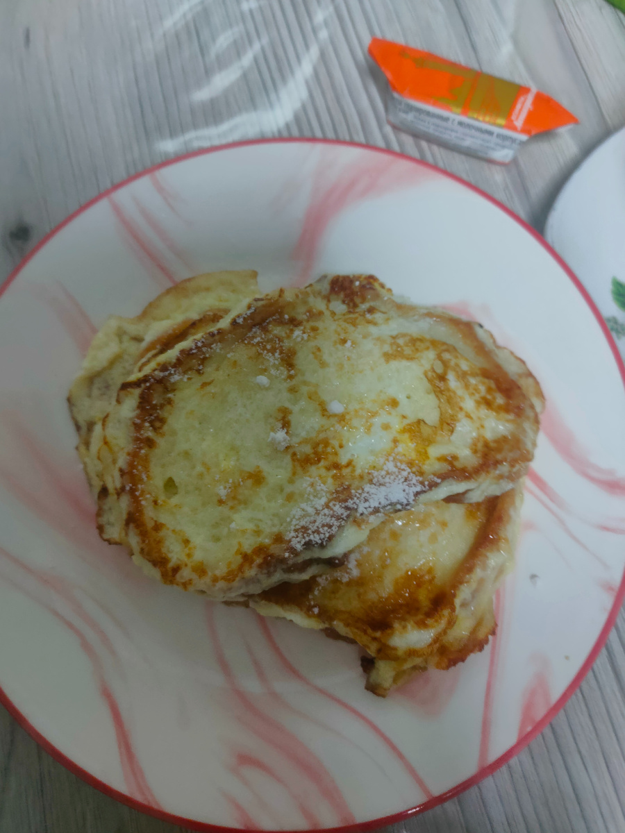 Пусть сегодня с самого утра все будет лучше, чем вчера. Доброе, доброе утро! С вами Надежда, и я приглашаю вас на мою кухню, где покажу вам мое меню на день. Проснулась по будильнику в 5 часов. Еду на 8-ми часовом автобусе в Екатеринбург. Выглянула в окно, показалось, что асфальт сырой. Неужели идет дождь. Расстроилась немного. Не люблю в дождливую погоду куда - то ездить. Выпустила во двор гулять Бобби. Ушел, не сопротивлялся. В плохую погоду его приходится нести на руках гулять. Вернулся сухой. А дождя и не было и нет. Просто температура снизилась после дневного тепла до 7 градусов. Окна запотели, да и туман был. Быстро готовлю себе завтрак. Это будут гренки. Присыпала их для сладости сахарной пудрой. заварила черный растворимый кофе, пила его с шоколадной конфетой Ленинградской. В поездке я никогда не обедаю. Скорее всего обед и ужин совмещу, когда вернусь домой. Доехали быстро, без пробок, в 09.50 была уже в Екатеринбурге, по переходу перешла на автобусную остановку. В 10.01 сел
