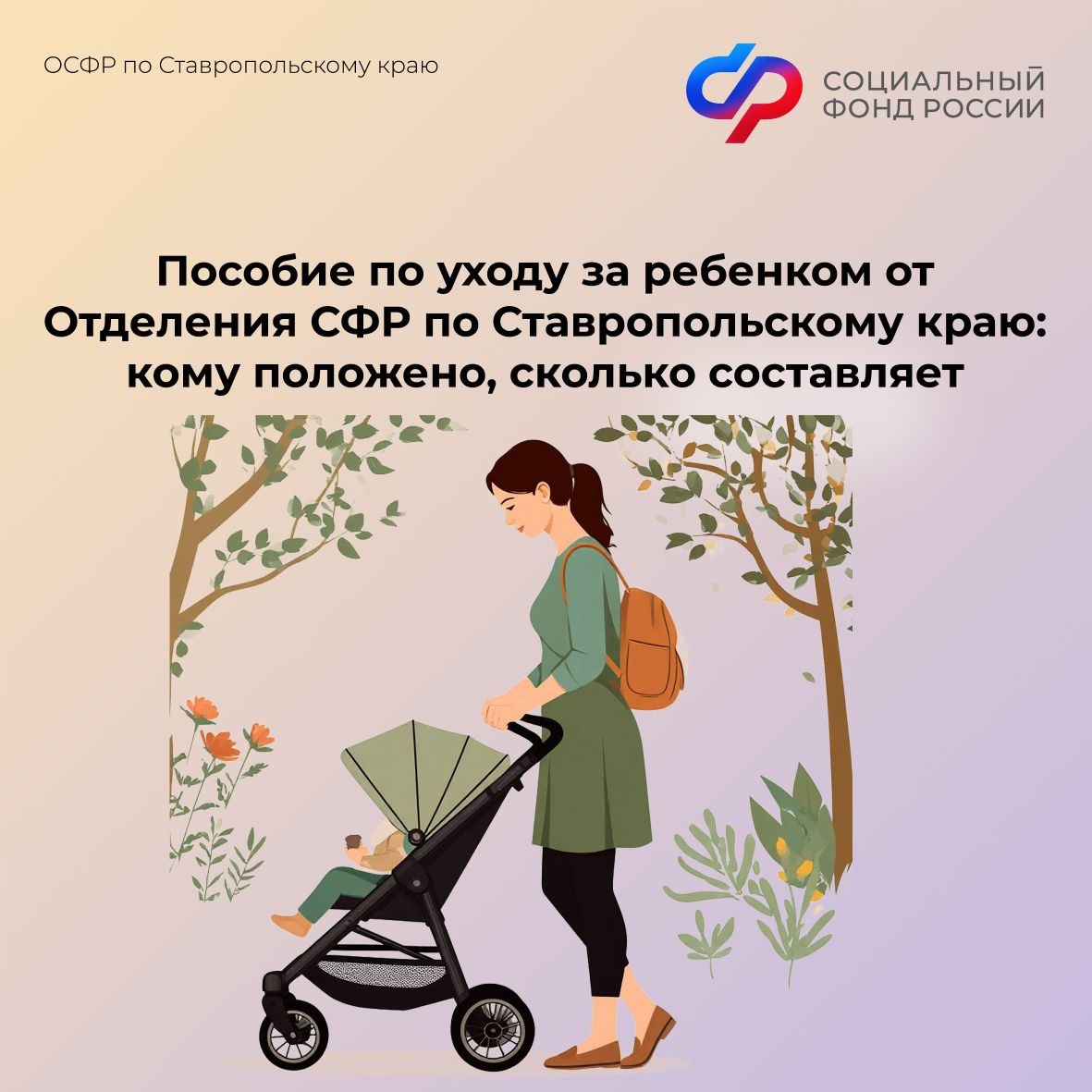 Отделения СФР по Ставропольскому краю в выплачивает жителям региона пособие по уходу за ребенком до полутора лет. ❓Кому положено пособие: 🔤одному из родителей 🔤другому родственнику, ухаживающему за ребенком 🔤опекуну 💳Размер выплаты: 🤝Для работающих родителей размер пособия равен 40% от среднего заработка (данные берутся за два календарных года до наступления отпуска по уходу за ребенком). Минимальный размер выплаты — 10 103,83 руб., максимальный — 68 995,48 руб. 🤝Для неработающих родителей — фиксированный размер: 10 103,83 руб. Исключение – граждане, уволенные в связи с ликвидацией организации, прекращением индивидуальной деятельности в период отпуска по уходу за ребенком. Для этой категории пособие предоставляется в размере 40 % среднего заработка за последние 12 календарных месяцев. ❓Как оформить: 🤝Работающим родителям необходимо подать заявление работодателю. 🤝Неработающим родителям – на портале госуслуг, в клиентской службе регионального Отделения СФР или в МФЦ. 😘