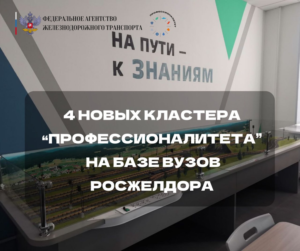 🫶 В вузах Росжелдора открыли сразу четыре производственно-образовательных кластера в рамках федеральной программы "Профессионалитет" 🚌Где появились новые учебные пространства: 🚑Санкт-Петербургский техникум железнодорожного транспорта (филиал ПГУПС), 🚑Нижегородский институт путей сообщения (филиал ПривГУПС), 🚑Красноярский институт железнодорожного транспорта (филиал ИрГУПС), 🚑Амурский институт железнодорожного транспорта (филиал ДВГУПС, г. Свободный Амурской области). О каждой локации подробно рассказываем в карточках🌳 👷♀️ Университеты получили гранты в размере 100 млн рублей на создание кластеров. Также финансирование выделили Росжелдор и ОАО «РЖД». 🫶В рамках «Профессионалитета» в учебных заведениях создаются условия, максимально приближенные к производственным. Это повышает практическую подготовку студентов и их востребованность на рынке труда. Кроме того, в кластерах можно получить рабочую специальность в ускоренном режиме - в течение 2,5 - 3,5 лет. 👩⚕️ Всего на баз