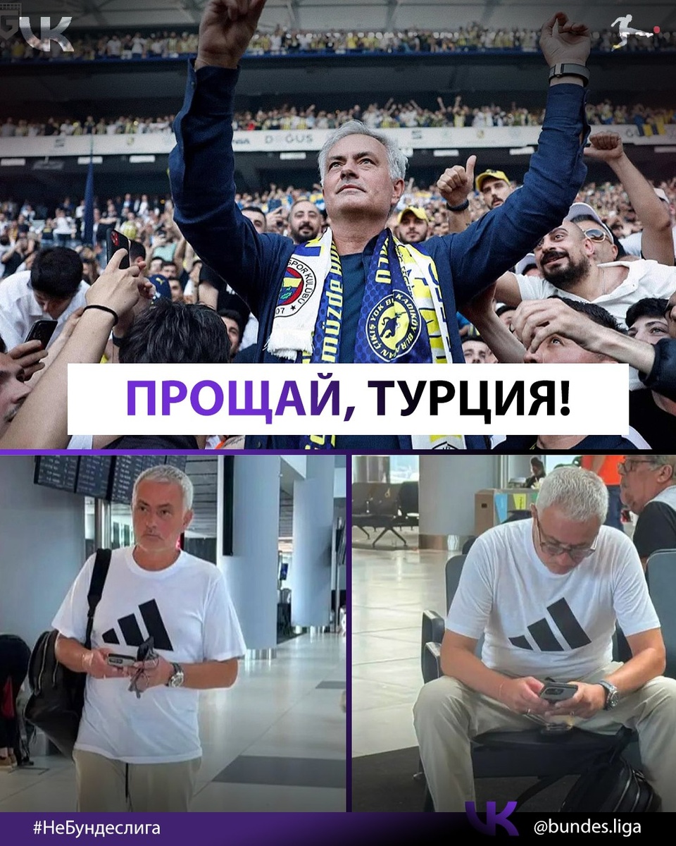 📸 Жозе Моуриньо был замечен один в аэропорту с рюкзаком, ожидающий вылета из Турции после того, как его уволил "Фенербахче" 💔✈ 💬 Моуринью: "Я еду домой посмотреть матч Спортинг 🆚 Порту и поужинать с семьей." #НеБундеслига