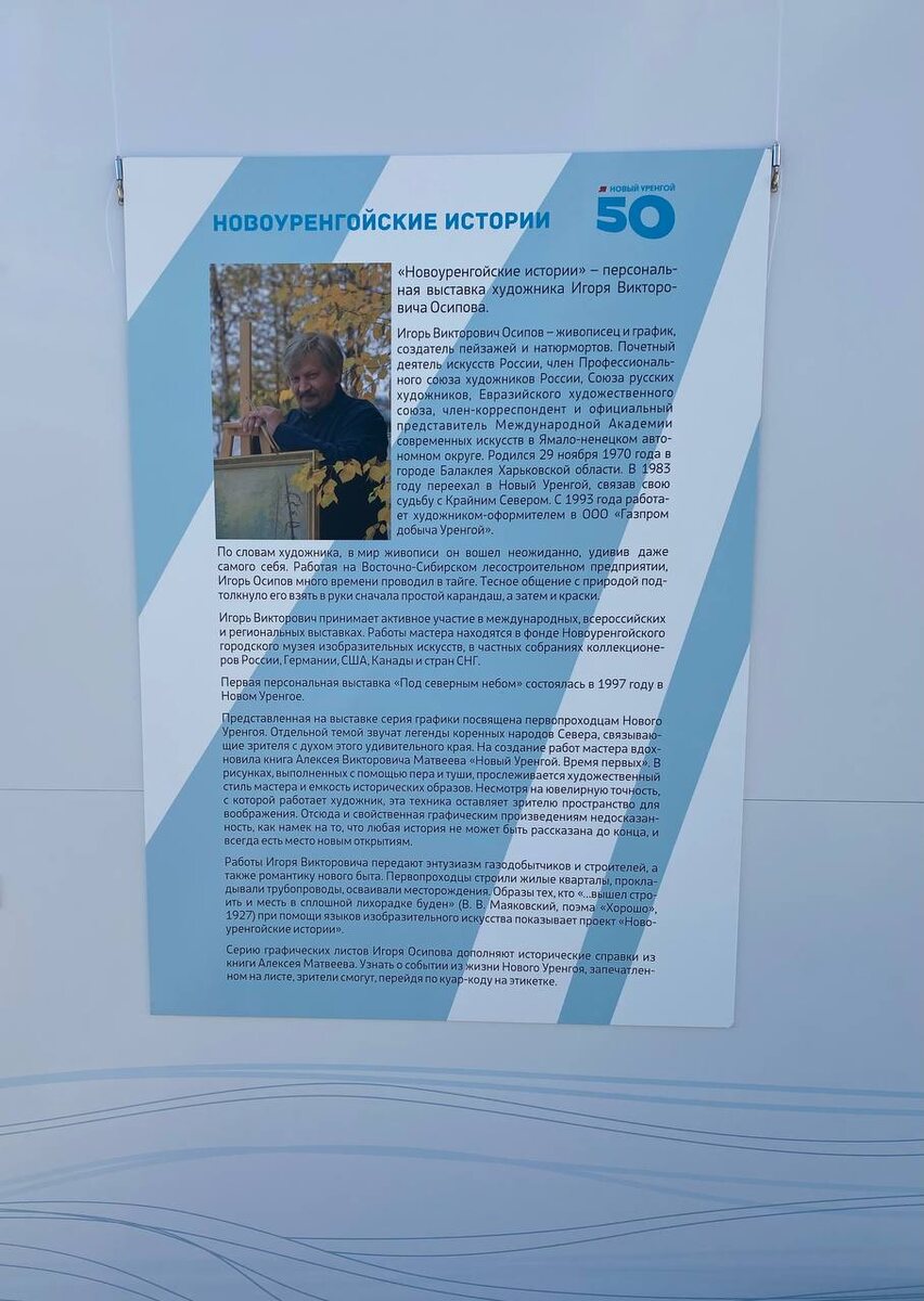 🎂 А вы видели «Новоуренгойские истории»? В парке «Дружба» открылась уникальная персональная выставка новоуренгойского художника Игоря Осипова в честь юбилея нашего города. #НУРу50лет Каждая картина — это окно в душу газовой столицы. Автор мастерски передаёт атмосферу Нового Уренгоя, его неповторимую природу, людей и их истории. #Юбилей_для_людей Приходите открыть для себя новые грани родного города! ❤️ Импульс Севера