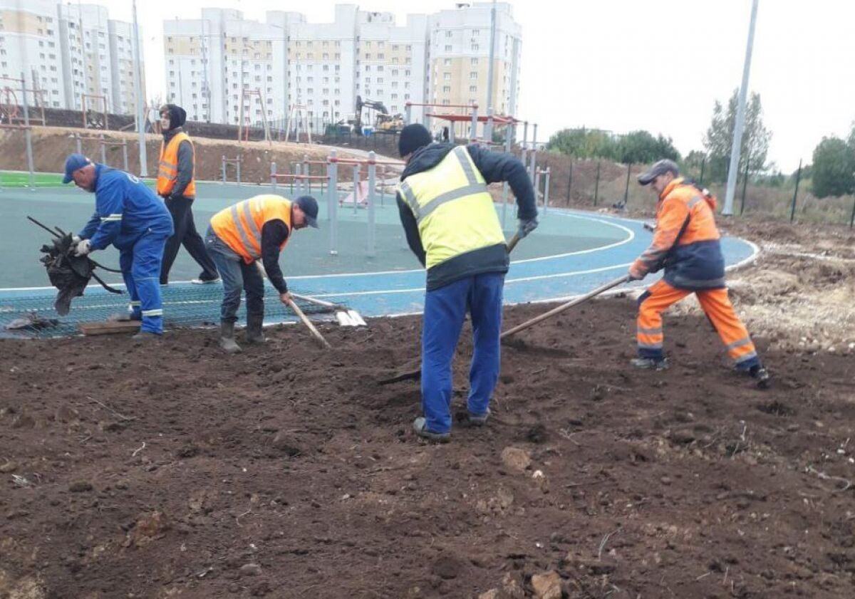 Рабочие ЦУГД Владимира почему-то облагораживают территорию школы в Веризино