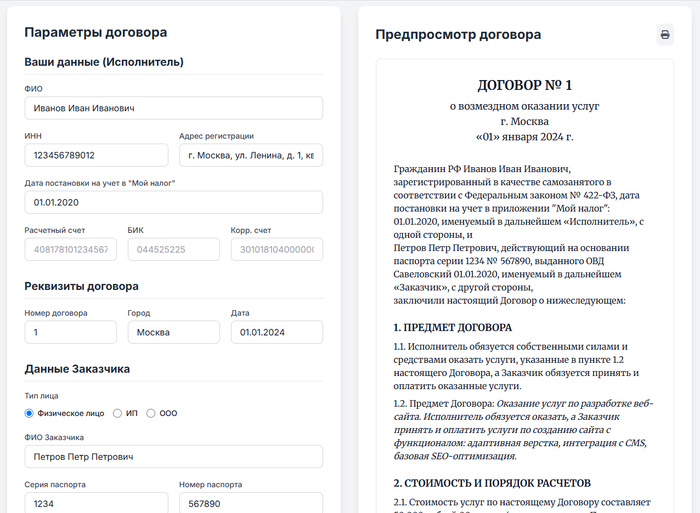 Вот все говорили что никому не нужен конструктор договора для самозанятых. Однако, почему ж я его сделал? Потому что нужен был мне. Когда-то. Когда я первый раз столкнулся с необходимостью заключить договор с клиентом (т.к. чек был большой и без договора ну никак совсем было). Это вызвало шквал проблем, вплоть до того что бы просто не забыть заполнить какое-то поле. Потому собственно я и собрал этот незамысловатый конструктор договора. Он простой, не идеальный, но проверенный. Может он не защитит от хитрожопого заказчика. Но явно повысит серьезность намерений фрилансера, и позволит работать уже не за две ветки, а за двадцать! Подписаться на Пикабу Познавательный. и Пикабу: Истории из жизни.
