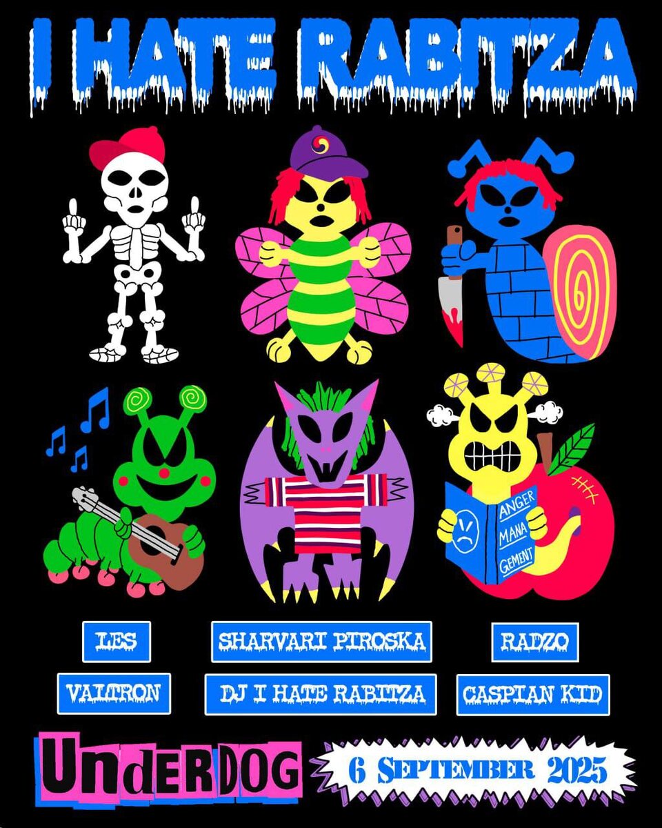 UNDERDOG MEETS RABITZA В первые осенние выходные Underdog встречает старых друзей. Во дворе соберутся все монстры «Рабицы». Шумные и невыносимые — Лес, Радзо, Каспиан, Вальтрон, Шарвари Пирошка и DJ I hate rabitza, кем бы он ни был — весь вечер ставят музыку во дворе, летают на перепочатых крыльях, шевелят отвратительными жвалами и хоботками. Настоящий парад чудиков под безжалостным сентябрьским небом — заходите в гости! Подробности на сайте underdog-moscow.ru и в Инсте @underdog_moscow 🎫 Вход свободный 📆 06 августа, с 18:00 📍 Underdog, Москва, ул. Маросейка, 6-8с1