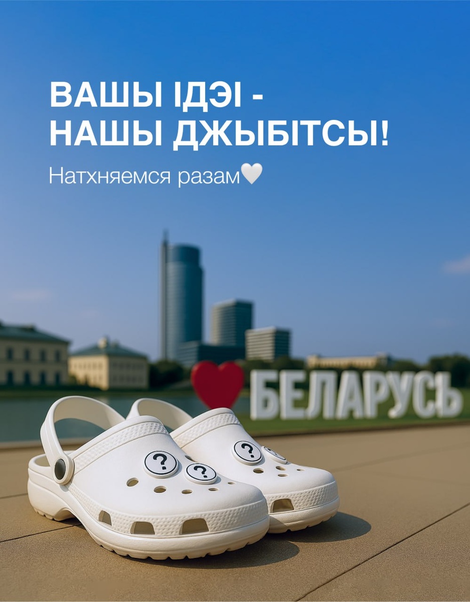 Вашы ідэі - нашы джыбітсы💥 Сябры, мы да гэтага часу пад вялізным уражаннем ад вашай рэакцыі на нашы кроксы "MEGATOP x ONLINER". Дзякуй за кожную ўсмешку і фота ў сторыс - гэта неацэнна❤️ Цяпер мы ў пошуку новых ідэй, каб зрабіць нашы калекцыі яшчэ страмчэй і арыгінальней! І ў гэтым нам патрэбна дапамога галоўных экспертаў (вас)! Які тэматыкі джыбітсы вы хочаце ўбачыць у наступны раз? Дзяліцеся сваімі ідэямі ў каментарах💭