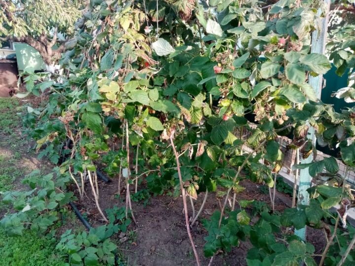 Малина плодоносит на двулетних побегах, которые в первый год активно растут, а на второй начинают ветвиться. На боковых веточках сначала появляются цветки, а затем ягоды. После сбора урожая побеги отмирают. Обрезка малины проводится в три этапа, с последовательным удалением побегов. 1. Отплодоносившие побеги.