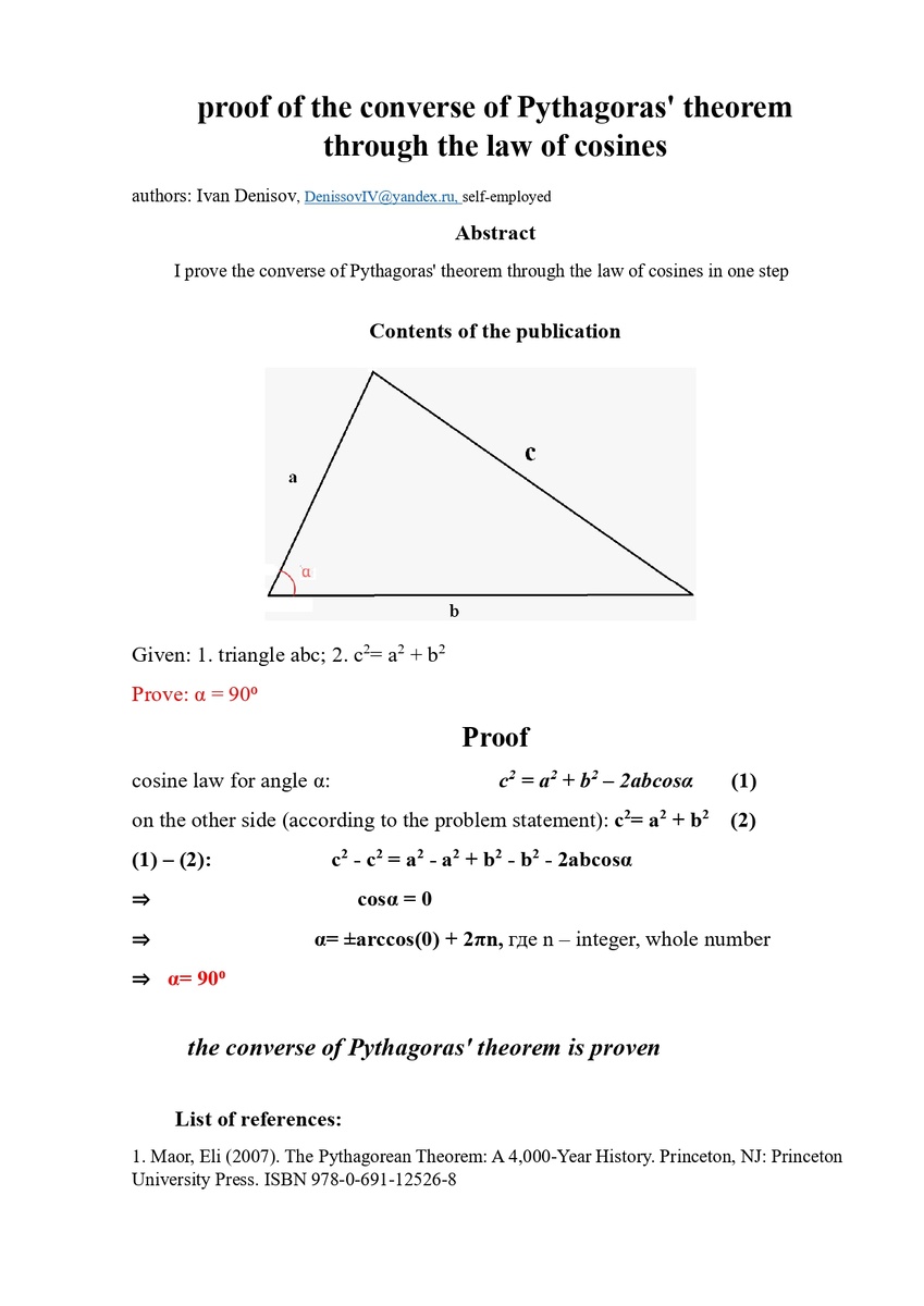 2.1 proof of the converse of Pythagoras' theorem through the law of cosines