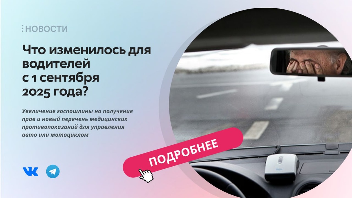 🔰Что изменилось для водителей с 1 сентября 2025 года? 🚚 С какими диагнозами нельзя за руль: 💥 С осени в силу вступает распоряжение № 892-р, которое расширяет список медицинских противопоказаний к управлению автомобилем. Теперь в перечне ограничений не только психические заболевания, но и «общие расстройства психологического развития». За руль не смогут садиться люди с аутизмом, синдромом Ретта, синдромом Аспергера и другими похожими диагнозами. 💥Кроме того, диагноз «ахроматопсия» (неспособность различать некоторые или все цвета) заменили на более общее понятие: «аномалии цветового зрения». На медкомиссии будут определять, какие именно нарушения препятствуют вождению, а какие нет. 💳 Увеличения госпошлины для автомобилистов: В России водительские права стали в два раза дороже. Соответствующий законопроект уже одобрили депутаты Госдумы сразу во втором и третьем чтениях. 💥 За удостоверение старого образца плата составаляет 4 тыс. рублей, а за документ нового образца – 6 тыс. ру