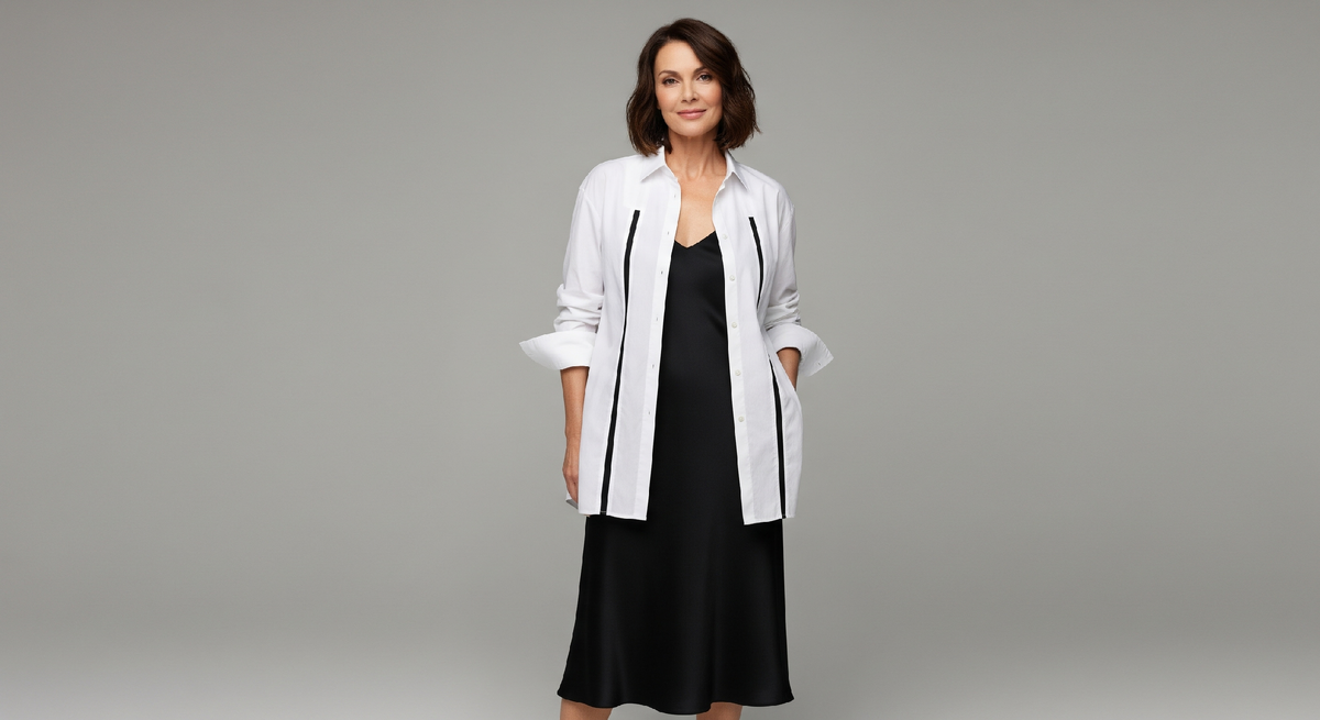 Приветствую! Сегодня мы запускаем новую серию "Вечная база", где будем учиться "выжимать" максимум из ключевых вещей гардероба. И наш первый герой — Его Величество Белая Рубашка. Почти у каждой женщины она есть. И почти каждая носит ее одинаково — застегнув на все пуговицы с брюками или юбкой. Это правильно. Но это бесконечно скучно! Хорошая белая рубашка — это не просто одежда. Это чистый холст, на котором можно нарисовать десятки образов: от расслабленно-богемного до строго-элегантного. Вот 3 неочевидных, но очень простых способа заставить ее работать на вас на 110%. Забудьте, что рубашка — это "нижний слой". Используйте ее как летнее пальто или жакет. Наденьте ее поверх простого топа, майки или даже тонкого платья-комбинации, не застегивая. Что это дает? Мгновенно создаются две вертикальные линии, которые стройнят и вытягивают силуэт. Образ становится многослойным, продуманным и гораздо более интересным. Идеальный прием для прохладного летнего вечера. Лучшая белая рубашка после 40 —