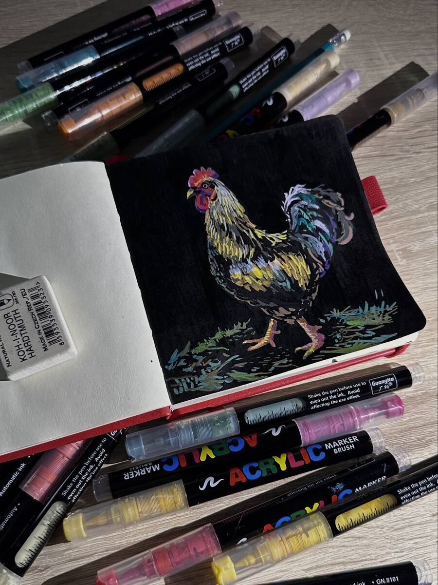 Продолжаю залипать на акриловых маркерах. Я не знаю, что это за зацикленность 🫣 Давно так не проваливалась. Наверно боюсь, что если будут долго лежать, то засохнут😅 Завтра планирую нарисовать кое-кого, по кому фанатеет моя коллега 🫡😌