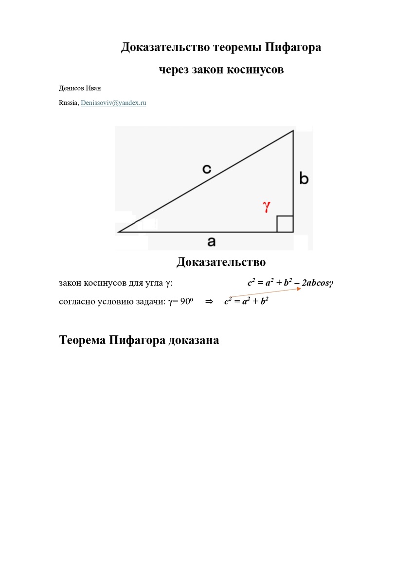 3. Доказательство теоремы Пифагора через закон косинусов