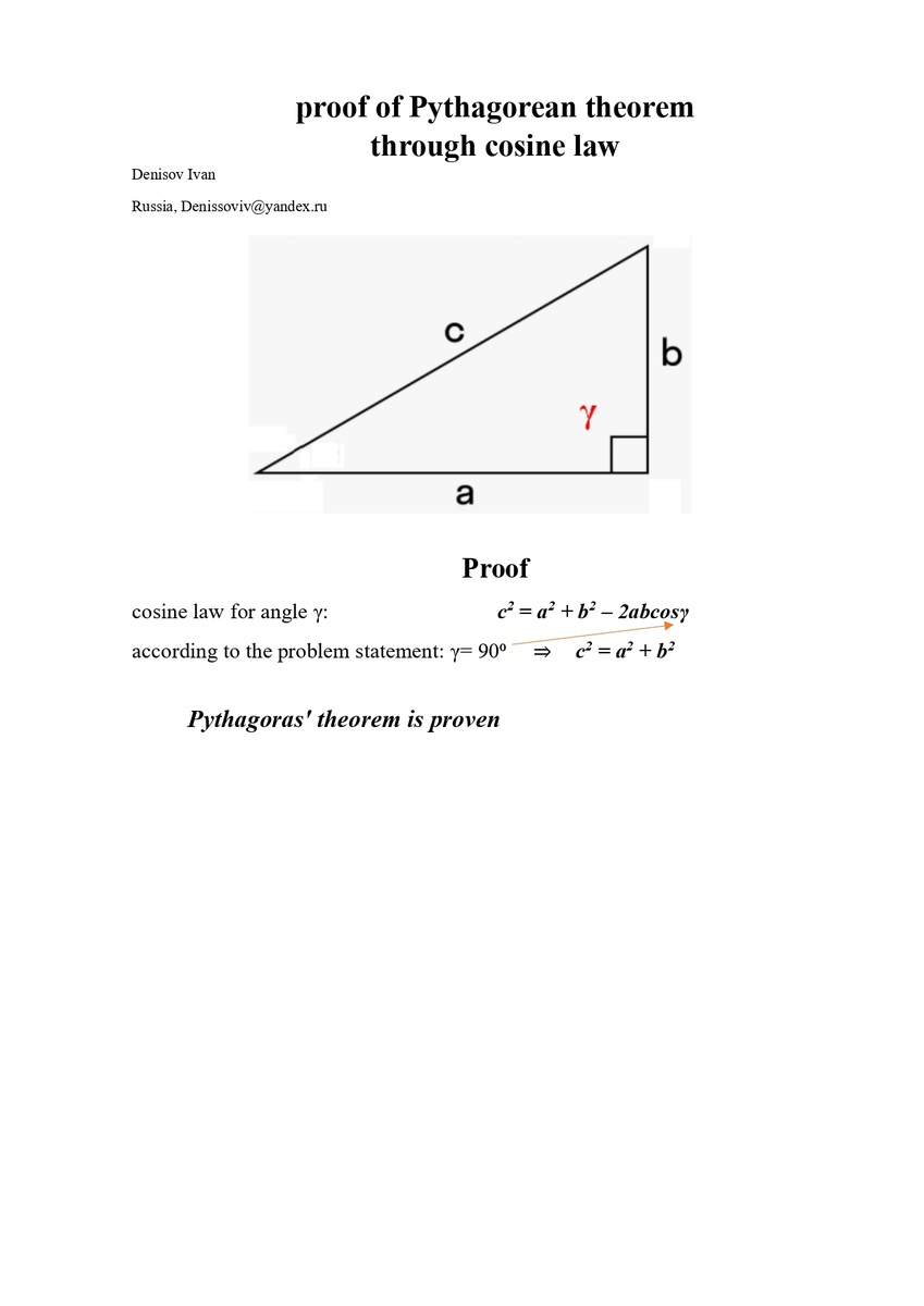 3.1 proof of pythagorean theorem through cosine law