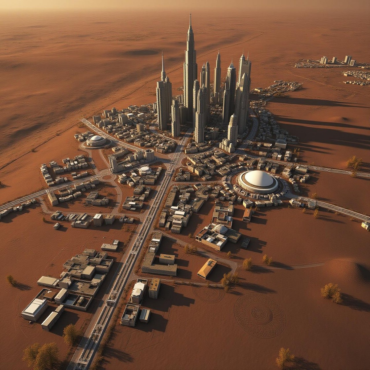 #ВВЕРХ #НашПутьНашиПобеды Нейросеть сгенерировала, как выглядел бы город Тюмень, если бы располагался на Марсе ))) Помимо изображения нейросеть сгенерировала и текст. Марсианская Тюмень расположилась бы в одном из самых благоприятных регионов планеты — в районе экватора, где температура наиболее комфортная для жизни. Город занял бы обширную долину, защищенную от пылевых бурь естественными возвышенностями. Такой город стал бы символом человеческой решимости покорять космос и адаптировать новые миры под свои нужды, сохраняя при этом свою культурную идентичность. Тюмень на Марсе могла бы стать первым шагом человечества к созданию многопланетарной цивилизации.