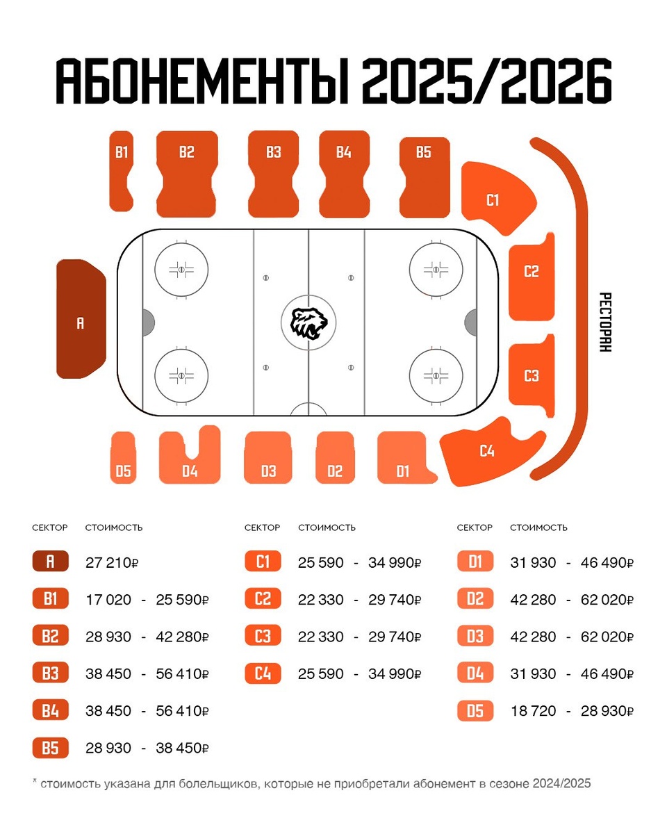Самый дешевый абонемент на игры челябинской команды в регулярном чемпионате стоит 17 020 рублей для новых покупателей (год назад — 10 000), самый дорогой за год подорожал на 89% и его можно взять за 62 020 рублей (год назад — 32 700). Владельцы прошлогодних абонементов имеют скидку в 30% на покупку новых.