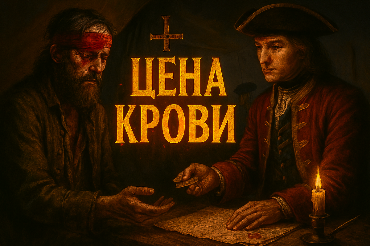 Скрип пера военного писаря в полковой канцелярии. Он записывает в ведомость: "Рядовой Семен Козлов - рука отсечена ядром под Полтавой. К выплате: 10 рублей".