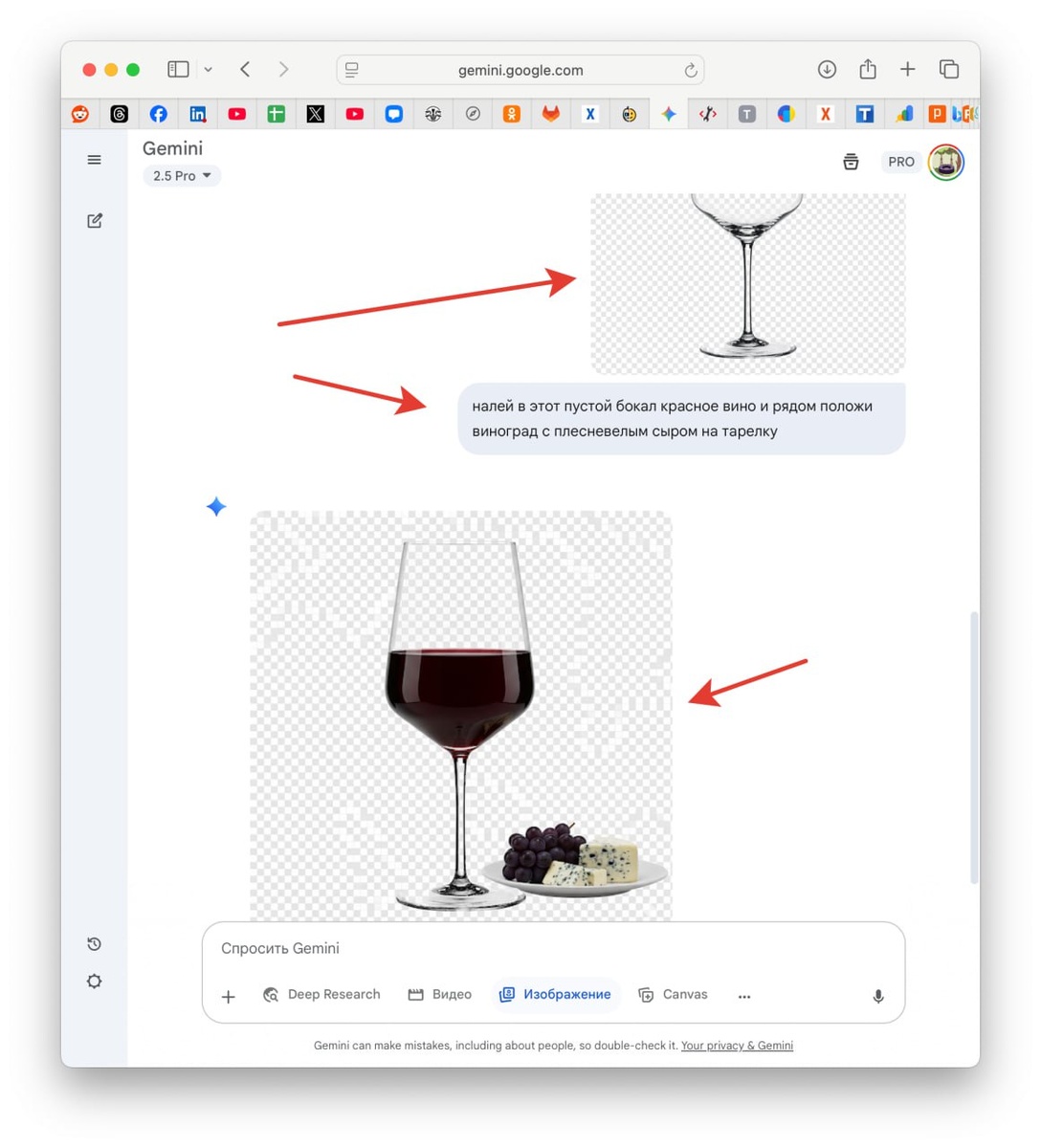 Знали, что ИИ Google Banana умеет делать так? Легко нальет в ваш пустой бакал красное вино :) сохранив форму самого бокала... Широчайшие возможности генерации новых изображений. Русский ИТ бизнес