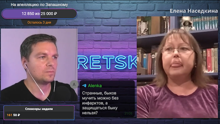 Зоофюрер Корецких Юрий Алексеевич, зоозащитник/веган, лидер «российской» зоозащиты, основатель и руководитель зоозащитной/веганской НКО МОО «Альянс Защитников Животных» («АЗЖ») (убежавший от преследования правоохранительных органом из России во Францию), совместно с руководителем краснодарского отделения «АЗЖ» Наседкиной Еленой, позиционирующей себя философом (находящейся в России), – на своих интернет-площадках 29.08.2025 провёл открытый стрим, в котором они зоозащитной пастве на пальцах популярно объяснили, почему большинство зоозащитного сообщества ни в чём не разбирается и поэтому должно следовать согласно предложенной их лидерами политической зоозащитной тактике, в которой Путин и все те из власти, кто против них, – есть идеологические враги, а кто с этим не согласен, тот не имеет права называться зоозащитником, а лишь зооволонтёром.
