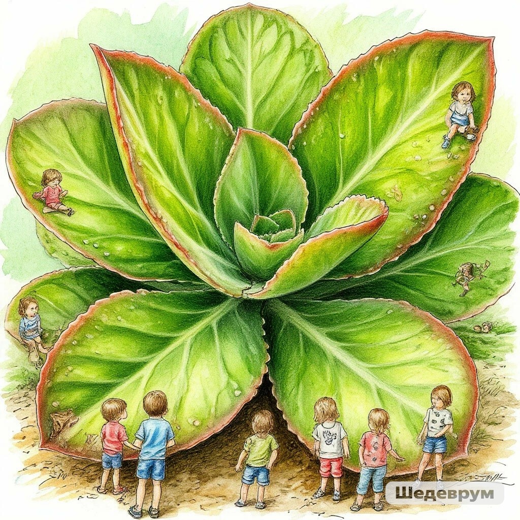 … Петрович поливал комнатные цветы и заметил, что весь подоконник усыпан «детками» каланхойчика. «Не пропадать же добру», -подумал он и высыпал их на только что очищенную от мусора клумбу. Туда же выбросил несколько фасолин. Капал мелкий дождик.