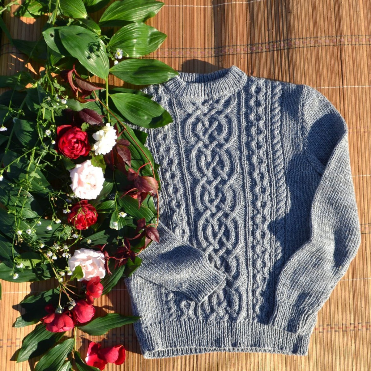 Свитер джемпер с рельефным рисунком. Араны жгуты. Классический серый цвет. Итальянский твид плюс меринос. Размер S XS. Лучше на невысокую девушку.