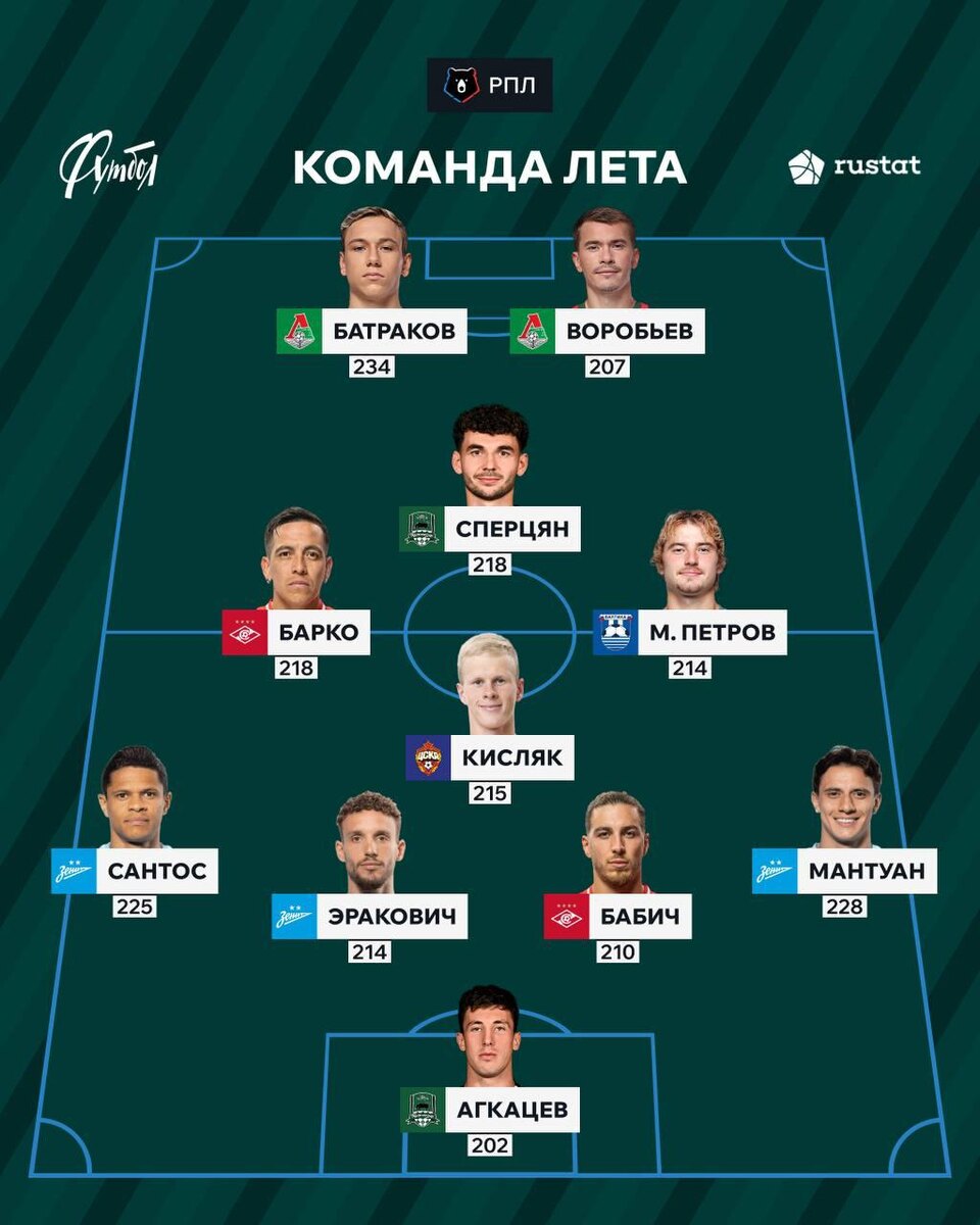 БАЛТИЙЦЫ В ТОПЕ 🔝 Представляем вам сборную лета Российской Премьер-лиги. В неё вошёл наш полузащитник Максим Петров! Команду летней части РПЛ составили редакция «Советского спорта» и сервис РУСТАТ. Расчёт лучших игроков провели на основе индекса футболистов, который выводится из технико-тактических действий спортсменов. Макс набрал 214 баллов! Браво, Балтиец! 👏