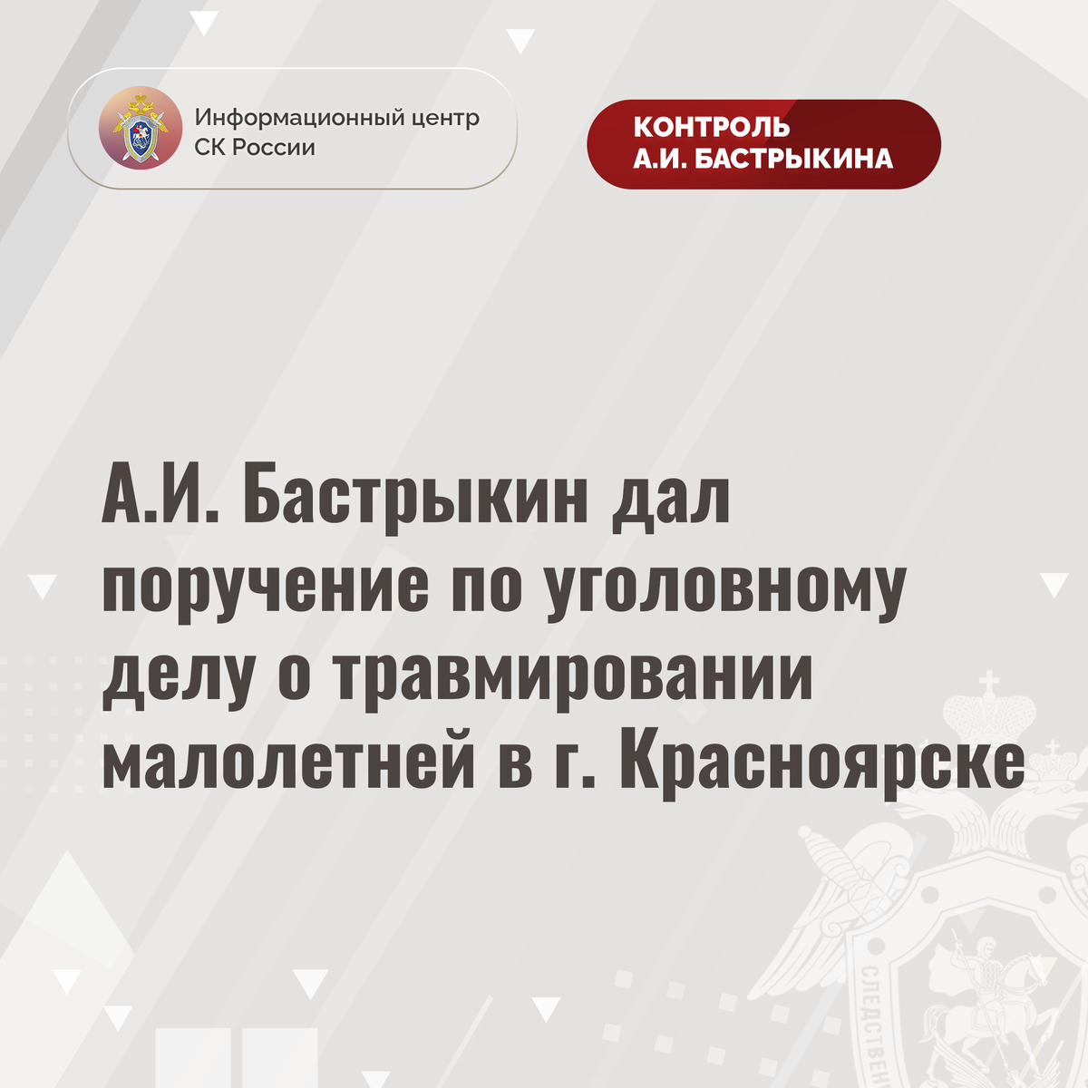 А.И. Бастрыкин дал поручение по уголовному делу о травмировании малолетней в г. Красноярске
