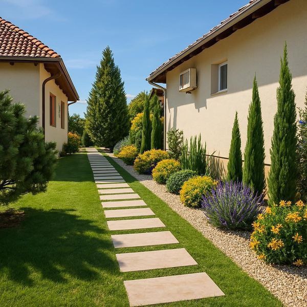 Пошаговые дорожки в саду — красота и практичность в одном🏡 Пошаговые дорожки — это простой и стильный способ организовать передвижение по саду. Они представляют собой уложенные плитки или камни с интервалом для шага, а пространство между ними может быть засыпано галькой, щебнем, газонной травой или оставлено под грунт. Преимущества пошаговых дорожек: Экономия — в отличие от сплошного мощения, требуется меньше материала и работы. Природный вид — дорожка гармонично вписывается в ландшафт, не “режет” пространство. Удобство 👣 — можно комфортно ходить даже после дождя, не пачкая обувь. Гибкость дизайна — можно проложить дорожку любой формы: прямой, волнистой, в обход деревьев или клумб. Долговечность — при правильной укладке плитка служит десятилетиями. 🎨 Идеи для дизайна: Камни в траве — создают естественный, “лесной” эффект. Плиты в гравии — минимализм и аккуратность. Контрастные формы — чередование круглых и квадратных элементов для современного стиля. Подсветка вдоль дорожки —