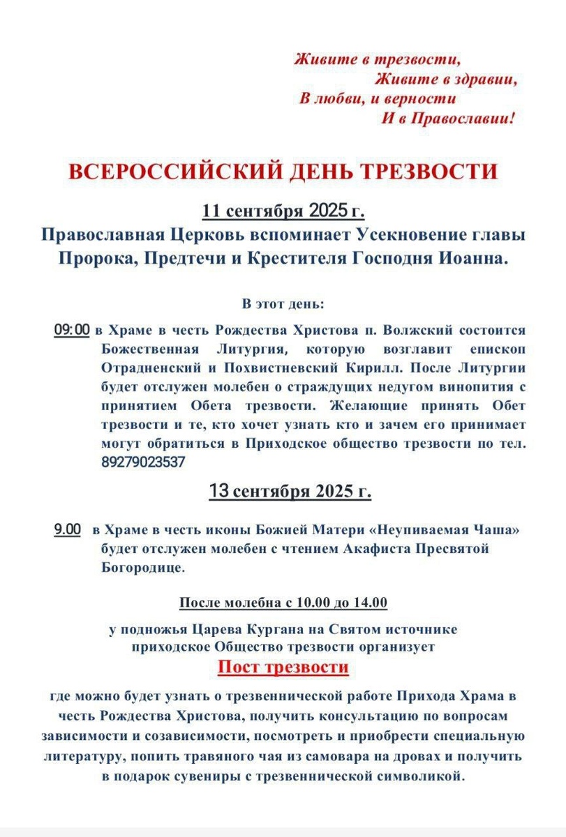 11 сентября в храме п.Волжский состоится Божественная литургия, которую возглавит епископ Кирилл