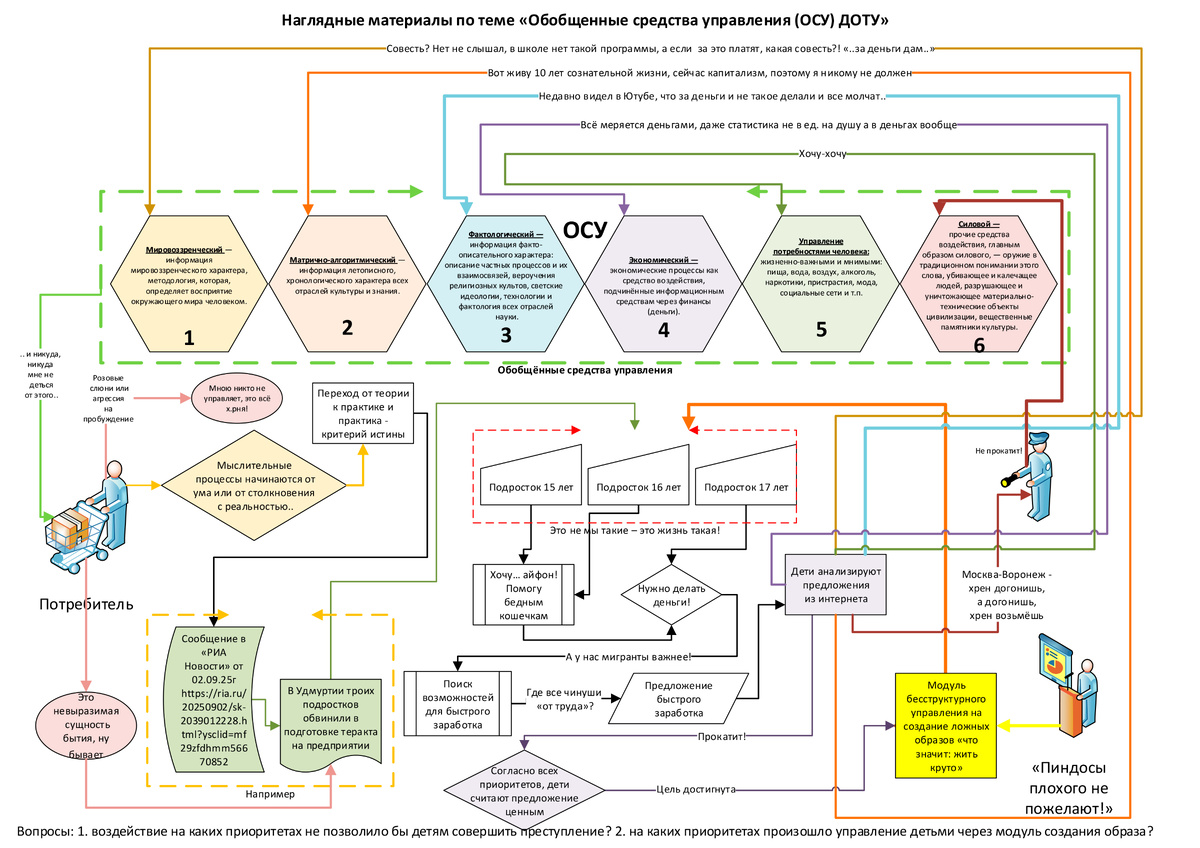 Как-то давно, изучая разные методы и теории управления, наткнулся на ДОТУ (достаточно общая теория управления). Изучал её, как и рекомендовали, по 5 страниц в день и после изучения попробовал применить в реальном хозяйственном управлении. Опыт был не слишком удачным, так как новый понятийный аппарат был только у меня, а не у инвесторов и пришлось переписать весь бизнес-план на старом понятийном аппарате. Но итог изучения ДОТУ не такой печальный, просто система опередила время, а то, что я овладел новым понятийным аппаратом, даёт просто превосходные результаты, когда смотришь натужные попытки ответственных и даже уважаемых мною людей, когда они пытаются новые явления описать в старом понятийном аппарате. Ну, например, я вижу, что такие или иные действия наших «партнёров» – это война Запада на определённом приоритет обобщённых средств управления (ОСУ), у нас же это называют «ментальной войной», «недружественными актами», что явно непонятно для народа «уже подняться или пока еще не время»