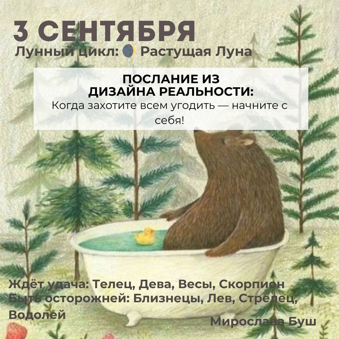 3 сентября РЕКОМЕНДАЦИИ: 🪐 День милосердия и сострадания, включения космической энергии любви. Делайте добро и оно вернется сторицей. ⛓️ Завтра нельзя жалеть себя, жаловаться и плакать. В таком состоянии можно будет надолго застрять. 💤 Сны могут быть мучительными, тяжелыми, страшными, не бойтесь. Это провокации свыше. Утром все бесследно развеется. Но сны будут вещими. ✉️ Подписаться на Мирославу #прогнознадень
