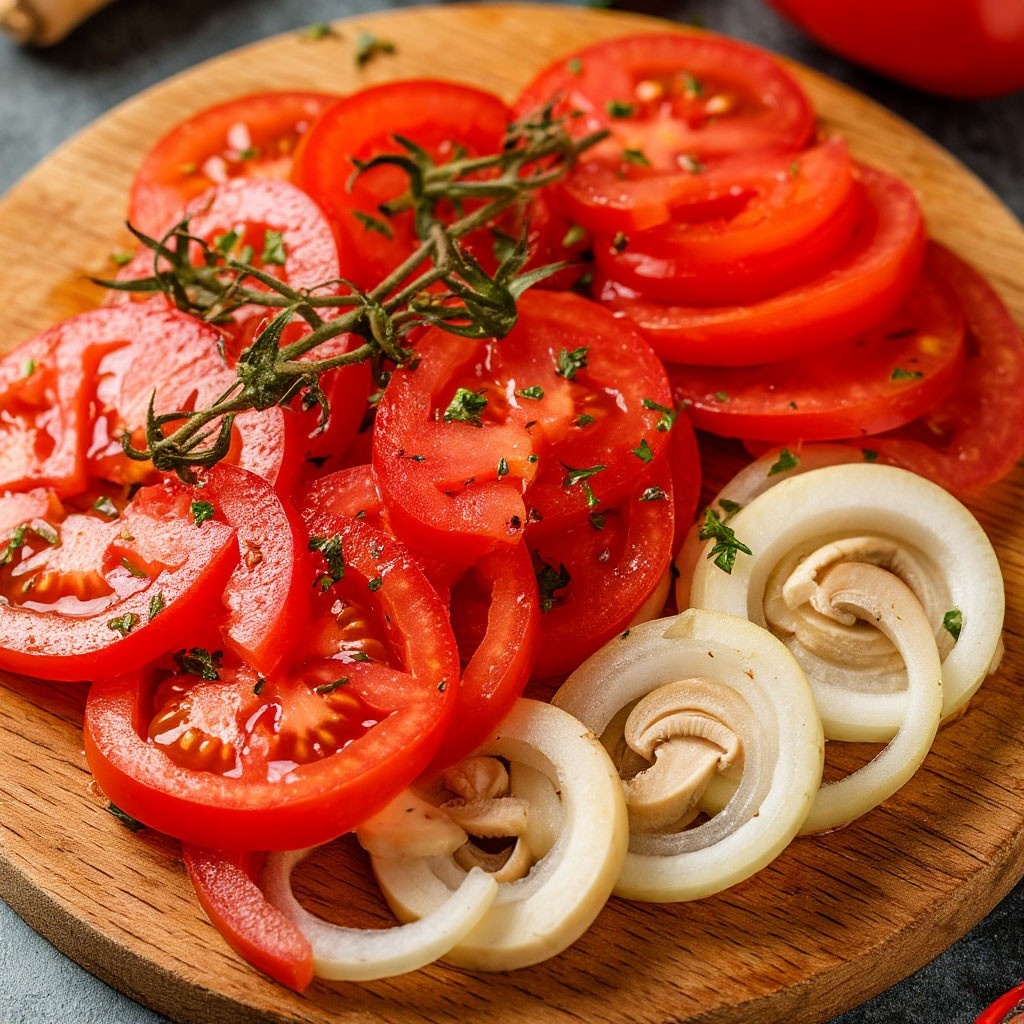 Представьте себе праздник, где каждый блюдо — как драгоценный камень в короне торжества. И среди этих сверкающих самоцветов особенно ярко засияет салат из сырых шампиньонов. Да-да, вы не ослышались! Эти скромные грибочки, привыкшие к роли послушных запеканщиков и жареных красавцев, готовы показать свой дерзкий характер в сыром виде. Лук-диверсант нарежьте тонкими перьями и отправьте в маринад. Смешайте полстакана воды с щепоткой соли, четвертью чайной ложки сахара и столовой ложкой яблочного или бальзамического уксуса. Пусть там понежится 10–15 минут. Шампиньоны-непоседы тщательно промойте от песка и земли. Нарежьте их тонкими ломтиками — пусть покажут свой характер! Помидоры-красавцы нарежьте ломтиками. Они добавят блюду сочности и яркости. Лук-путешественник уже отдохнул в маринаде — достаньте его и добавьте к компании овощей. Всё хорошенько перемешайте, приправьте солью и оливковым маслом. По желанию можно добавить немного чёрного перца — пусть будет пикантно. И вот он —