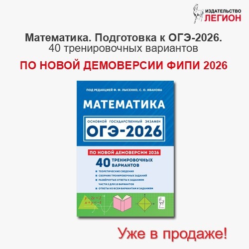 Новинка! Уже в продаже! Пособие "Математика. Подготовка к ОГЭ-2026. 9 класс. 40 тренировочных вариантов по демоверсии 2026 года" Пособие предназначено для подготовки к ОГЭ по математике в 2026 году. Книга содержит: 40 новых авторских тренировочных вариантов, составленных по проектам демоверсии и спецификации ОГЭ 2026 года, опубликованным на сайте ФИПИ 21.08.2025 г.; алгоритмы выполнения заданий повышенного и высокого уровней сложности для 10 вариантов; сборник из 540 задач, структурированных по темам курса и уровням сложности; ответы ко всем вариантам и задачам; краткий теоретический справочник. Пособие предназначено девятиклассникам, а также учителям, осуществляющим подготовку школьников к ОГЭ.