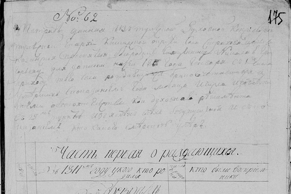 Сначала я нашла документы о дворянстве Прибиль Ивана Антоновича, в которых было написано, что его сыну Якову от жены Надежды Георгиевны, в девичестве Аристовой, досталось село Страхово. По сохранившимся метрикам я нашла рождение Надежды у Аристова Георгия Ивановича и его жены Любови Николаевны. Таким образом, стало ясно, что Аристовы и Прибиль – родственники. Надежде часть села досталась от матери и отца.