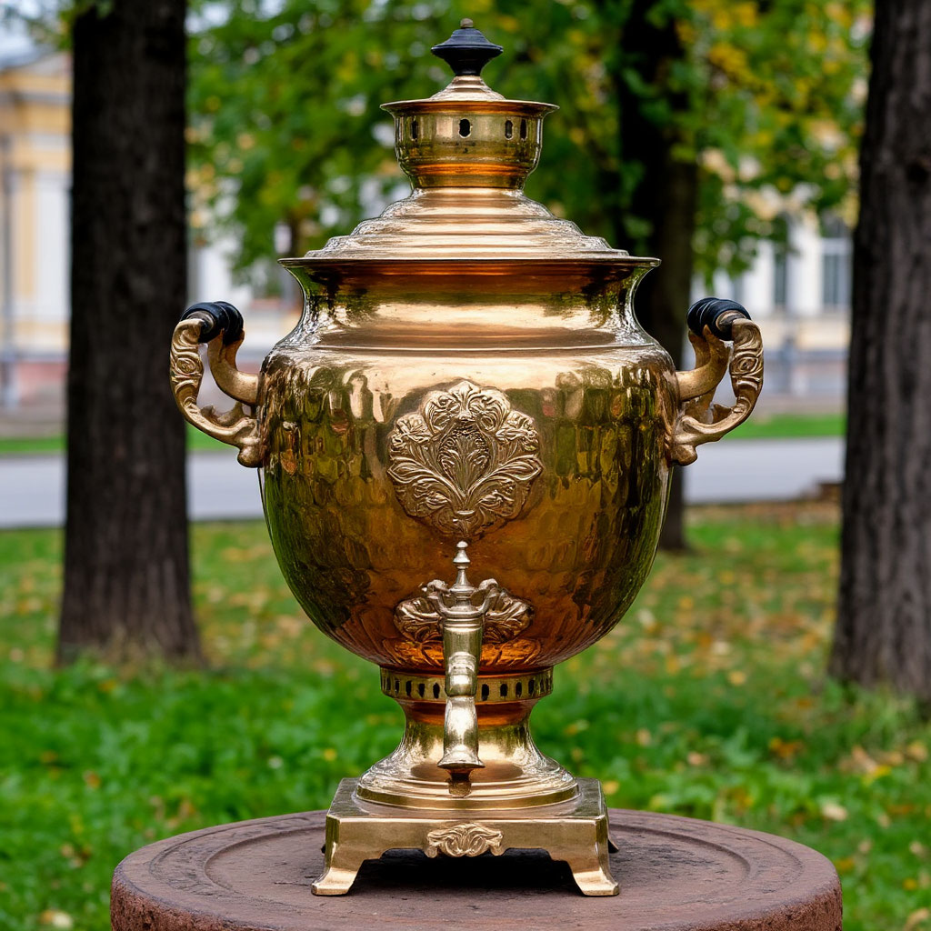 В-третьих, самовар был не просто предметом быта, но и своеобразным социальным маркером. Богато украшенные самовары из драгоценных металлов были доступны только состоятельным людям, в то время как простые медные или латунные самовары пользовались популярностью у крестьян и ремесленников.