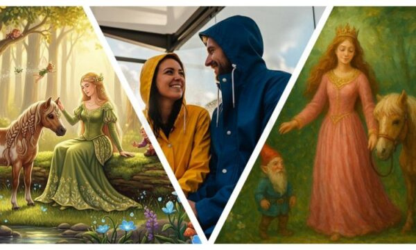 Нарисуйте картину: принцесса в лесу, вокруг неё феи, пикси, гномы и пони. Пусть будет атмосфера волшебной сказки, а сама иллюстрация напоминала бы работу художника. Размер — 1920 на 1080 пикселей.