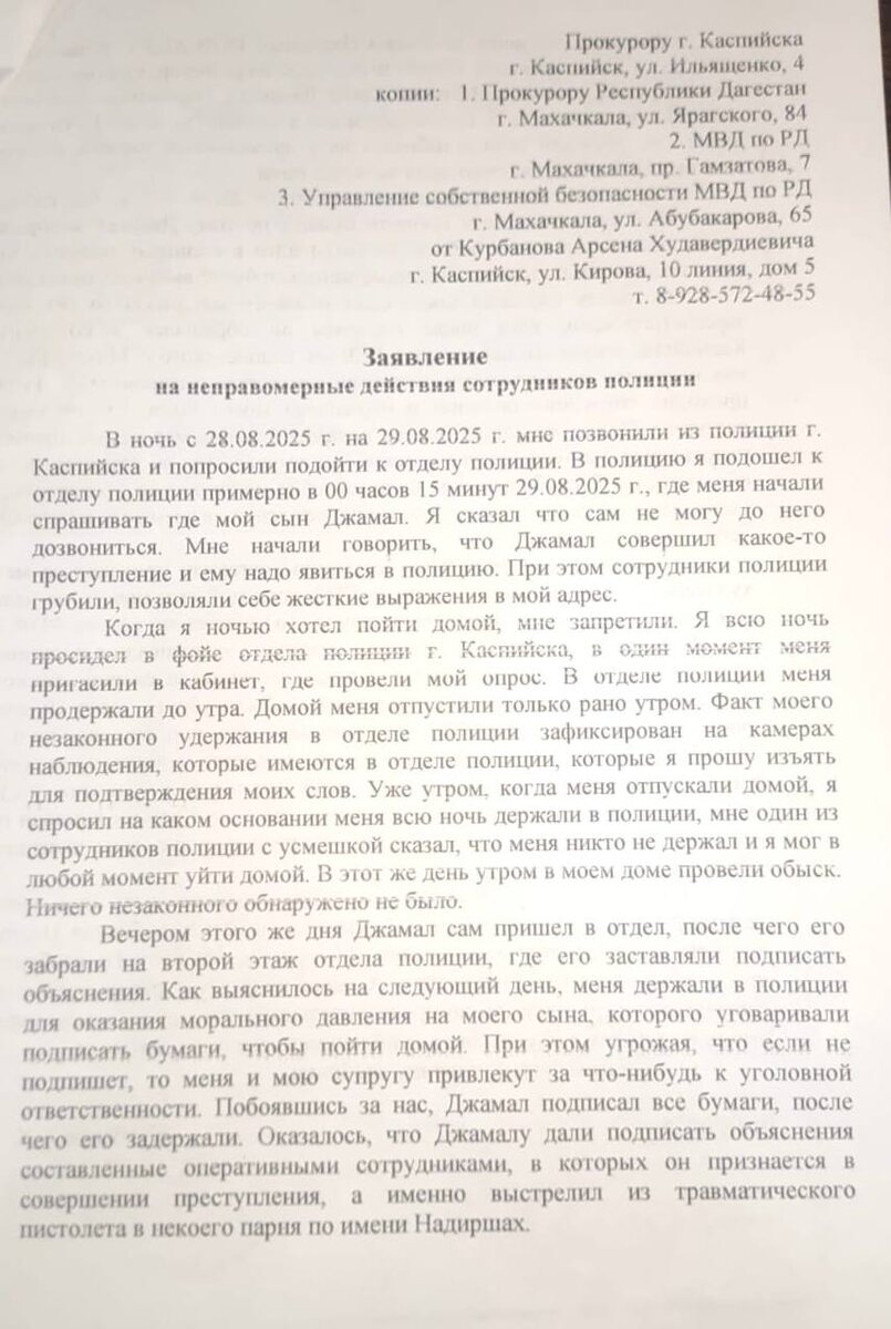 ©19 августа в г. Каспийск 10 молодых и отмороженных парней избили толпой одного парня — участника СВО и его товарища, и, в результате, стал фигурантом уголовного дела. Правда, сотрудники Каспийского ГОВД по отношении к нему допустили невиданную «принципиальность» и чтобы получить признательные показания, били его товарища, а также оказывали психологическое воздействие на его близких родственников, удерживали отца в отделе полиции, а также угрожали, что на отца или мать возбудят уголовное дело. В результате всего этого , 1 сентября уже его отец обратился с заявлением во все возможные органы." #нам_пишут 🧐 "Черновик" просит вышеуказанное обращение читателя проверить органы прокуратуры, а также отреагировать МВД России и СК России. Подписаться на "Черновик" 2.0 | Обратная связь: @chernovik_1_bot