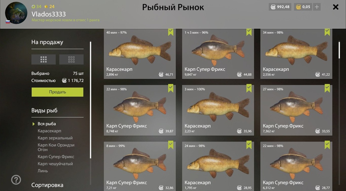 - Рыба: Карасекарп, Карп Супер Фрикс, Линь
