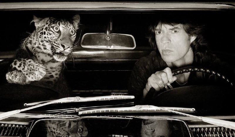 Мик Джаггер и леопард, которого в 1992 году ему подсадил в машину фотограф Альберт Уотсон. В Chevrolet Corvette 1959 года в интересах журнала Rolling Stone. До 9 октября фото можно увидеть на берлинской выставке «Elegance in Motion: Celebrating Automotive Legends». Зверя и Мика разделял плексиглас, если что.