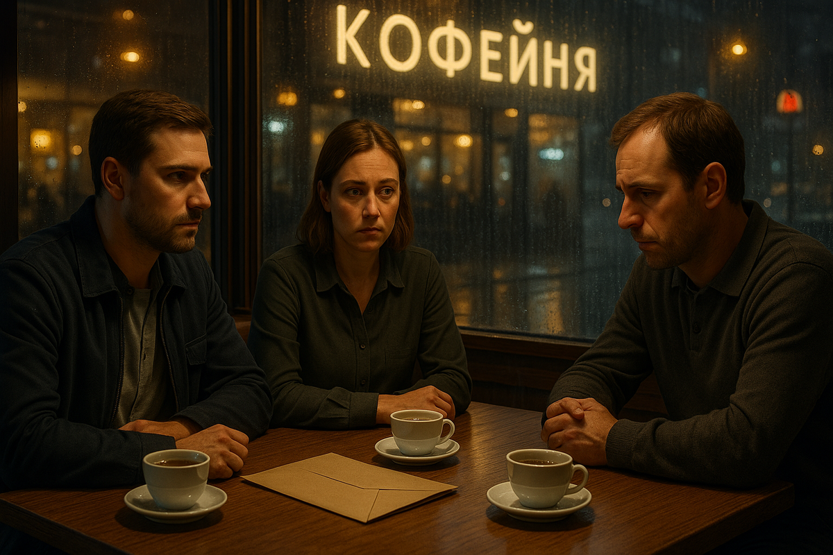 Мы уселись за один стол. Антон сел напротив, держась за край стола, будто тот мог уехать без него. Марина оказалась между нами — физически и по сути. Я смотрел то на неё, то на него и слышал только собственный пульс, смешанный с шипением кофемашины.