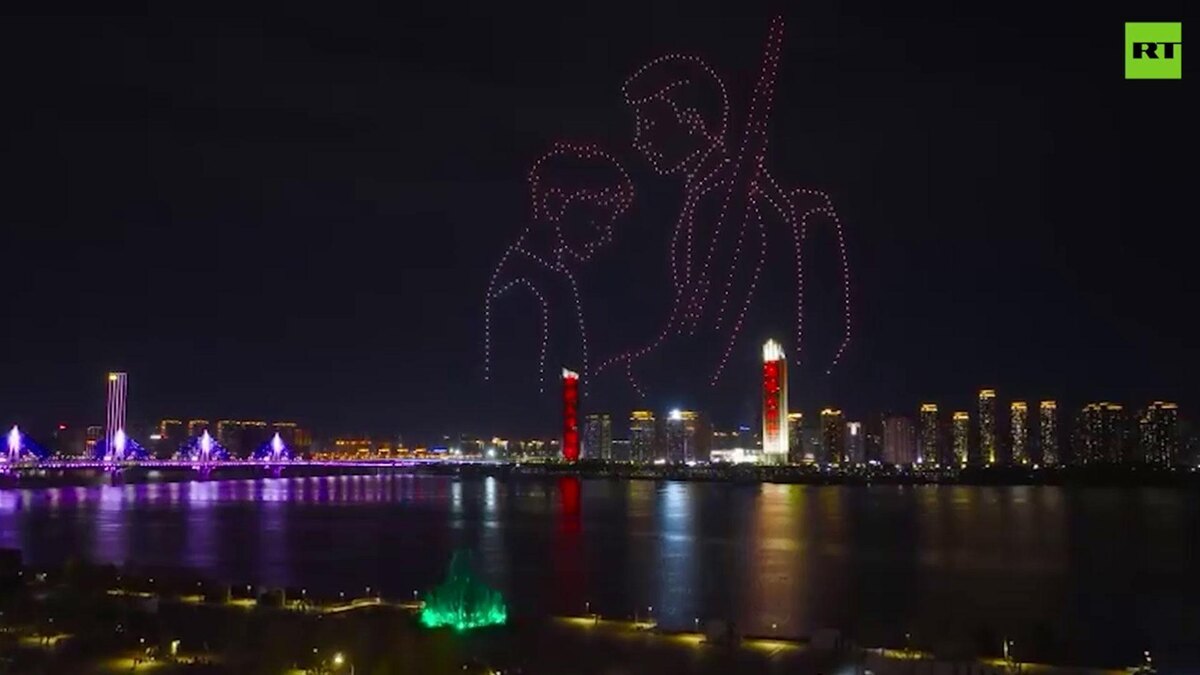[ Смотреть видео на сайте НТВ ] RT и китайский телеканал Jiangxi TV организовали шоу дронов. Представление с участием 1200 дронов прошло в округе Наньчан. Беспилотники образовали изображения о Второй мировой войне, победе и российско-китайской дружбе. В ночном небе зажигались строки на китайском и русском языках. А в финале зрители увидели пульсирующее сердце и фразу «Пусть дружба длится вечно». Напомним, 3 сентября в столице Китая пройдет празднование по случаю 80-летия победы в Войне сопротивления китайского народа японским захватчикам и Второй мировой войне. На площади Тяньаньмэнь состоится военный парад. Всего в мероприятии примут участие 26 лидеров государств, включая российского президента Владимира Путина. 31 августа он приехал в Китай с четырехдневным визитом. По материалам: RT. [ Смотреть видео на сайте НТВ ]