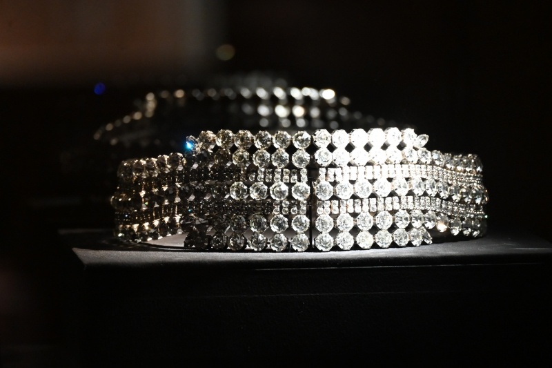Целый зал выставки посвящен современным шедеврам от ведущих мировых брендов моды, созданным из кристаллов и сплавов. Невероятное сияние этих произведений продолжает завораживать зрителей.