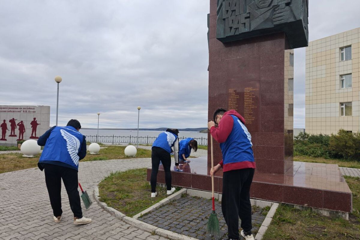 Уборку организовали в рамках партпроекта «Историческая память», накануне Дня победы над милитаристской Японией, Дня окончания Второй мировой войны В преддверии памятной даты активисты «Единой России», МГЕР и движения «Волонтеры Победы» организовали субботник на территории знакового места столицы Чукотки – у памятника «Чукотка – фронту» («Никто не забыт, ничто не забыто»). Они вытерли пыль с памятника и плит, установленных на местах, где хранятся специальные капсулы с землей с мест крупнейших сражений Великой Отечественной войны, привели в порядок прилегающую территорию. «Как и в прошлые годы, в нынешнем году накануне Дня окончания Второй мировой войны мы организовали субботник у памятника «Чукотка-фронту». Важно, что в нашем мероприятии участвовала молодежь, это показывает, что наши юноши и девушки помнят подвиги наших предков и хранят историческую память, - рассказала руководитель РИК Партии Надежда Гребцова. – Завтра, 3 сентября, наша страна отметит большую историческую дату – 80-лет