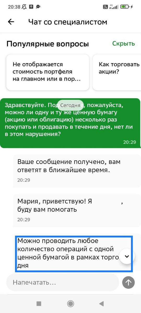 Какое количество операций можно проводить с ценной бумагой в течение дня? Ответ поддержки.