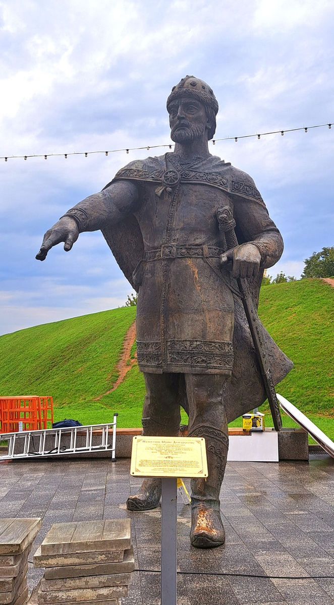 Дмитров- старинный город, находящийся в 79 км. от Москвы. Территория всего 26 квадратных километров. Сюда удобно добраться на электричке, можно даже не покупать билет, а оплачивать по Тройке, считается как дальний пригород на МЦД. Все основные достопримечательности находятся в центре, все сосредоточено вокруг Дмитровского Кремля, который потерял стены, но сохранил валы. Гулять здесь одно большое удовольствие. На Советской площади рядом с крепостными валами установлен памятник Дмитрию Долгорукому. Забавно, что если смотреть с возвышенности, кажется, что он тянет руку к Ленину, который стоит напротив. Памятник современный, 2001 год. 4,5 метра в высоту. Рукой князь указывает место, где будет город, а на поясе у него сумка "калита" для сбора дани. В летописи указано, что в 1154 году у Юрия Долгорукого родился сын, в честь которого он назвал основанный город. Рядом фонтан, аллея с лавками, куча велосипедистов и вообще народ никуда не спешит, наслаждается моментом. В коврижечную не