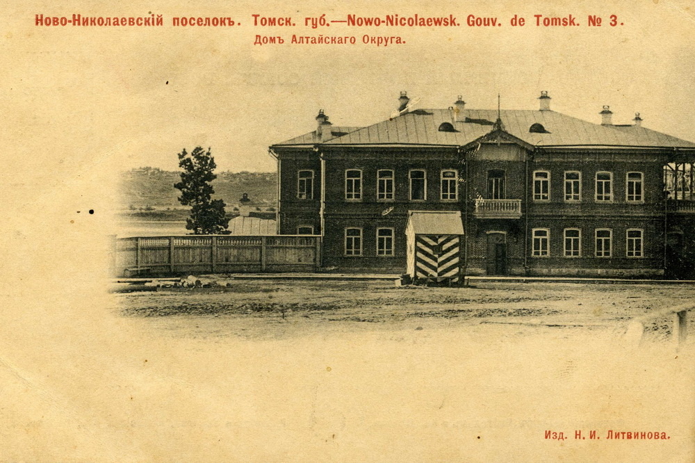 В парке «Городское начало» находится хорошо сохранившееся здание управления Томским имением Алтайского округа Кабинета Его Императорского Величества — Обская, 4. Это каменное здание прекрасно не только своей архитектурой, оно уникально и с исторической точки зрения. Константин Голодяев Именно в нём была совершена крупнейшая торговая сделка XX века. Дело в том, что земля, на которой обосновался будущий город, как и большинство земель Алтайского горного округа, ещё со времён Елизаветы Петровны была в частной собственности царствующих особ и управлялись специальным институтом — Кабинетом Его императорского величества. Дом Алтайского округа (изд. Н.П. Литвинова). Фото: Музей Новосибирска Управлял тогда Кабинетом член Государственного совета генерал-лейтенант Павел Константинович Гудим-Левкович, а нашим Алтайском округом — другой генерал Василий Ксенофонтович Болдырев. Были в Ново-Николаевске такие улицы: Гудимовская и Болдыревская (теперь Коммунистическая и Октябрьская). П.К. Гудим-Левкови