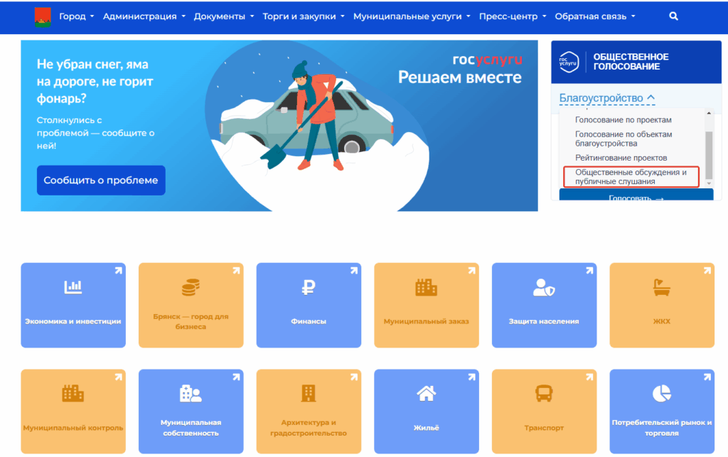 - посредством официального сайта Брянской городской администрации (баннер «Мой выбор, моё будущее», раздел «Опросы», подраздел «Общественные обсуждения и публичные слушания»);