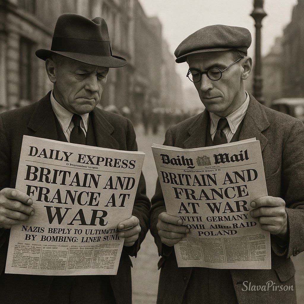 Лондон и Париж, 3 сентября 1939 года. Великобритания и Франция объявили войну Германии после вторжения в Польшу — локальный конфликт окончательно стал общеевропейским и перешёл в фазу мировой войны.