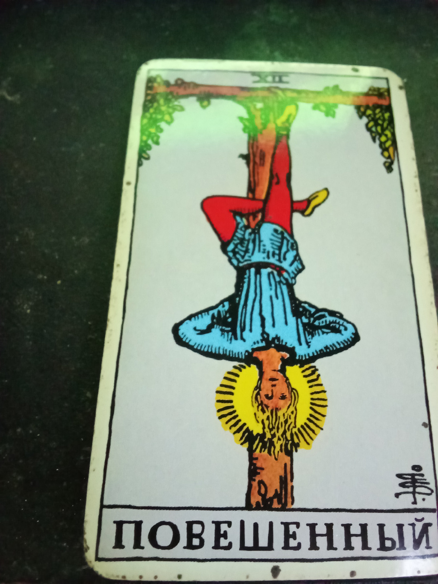Повешенный,предупреждает о возможной опасности для вашей жизни или здоровья. Следует быть осторожным и осматриваться по сторонам,так как может произойти несчастный случай или злоумышленное противоправное действие против вас. Могут попытаться втянуть в какое то преступление или сделать какую - то махинацию. Вы можете отравиться спиртным у себя дома некачественным или бракованным алкоголем.Вы можете испытать сердечный приступ с детальным исходом и вряд ли кто то поможет вам.Вероятно потеря денег и вымогательство,есть вероятность стать жертвой мошенничества или вовлечение в преступление.Возможны различные подставы или противоправные махинации с целью получения денег или запугивания. Вам сегодня следует тщательно пересмотреть все свои планы так как сегодня не самый лучший день для каких либо дел, они могут пойти совсем нежелательным путём. Не следует так же пытаться повлиять на ход дня все попытки приведут к противоположным результатам.