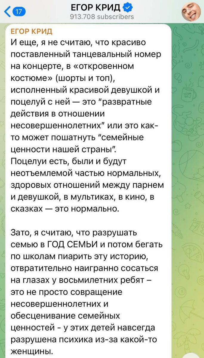 Спите? А Егор Крид дерзко ответил на обвинения в развратных действиях от Екатерины Мизулиной