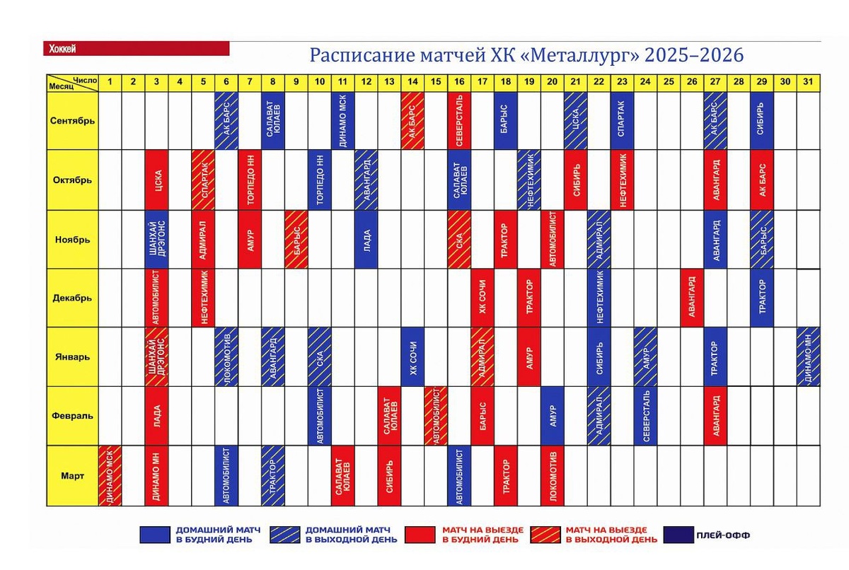 Расписание игр хоккейной команды Металлург Магнитогорск